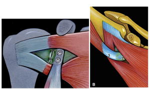 Cette technique décrite par le Pr Wolf et publiée en 2004, puis démocratisée au congrès international de Nice (Nice Shoulder Course) créé par le Pr Boileau, trouve toute sa place dans l’arsenal de traitements possibles. Lors des luxations, la tête de l’humérus présente une encoche osseuse liée à l’endroit du contact avec la glène de l’omoplate. Cette encoche peut être comblée sous vidéochirurgie en plaquant un tendon de la coiffe des rotateurs dedans, permettant d’améliorer la stabilité.