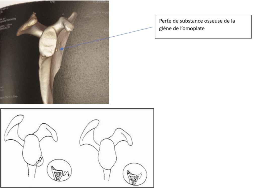Lorsqu’il y a des pertes de substances osseuses, ce qui est fréquent (usure osseuse liée aux luxations à répétition, petit fragment osseux arraché), le geste sera adapté en conséquence.
