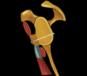 Parmi les différentes solutions proposées, la butée de Latarjet est la plus complète avec le moins de risques de récidive (<5%). Il s’agit de transférer un fragment osseux (la coracoïde) avec son tendon attaché (le coraco biceps) pour redonner du volume osseux sur la glène et stabiliser l’épaule avec un effet sangle du tendon (comme une ceinture de sécurité).